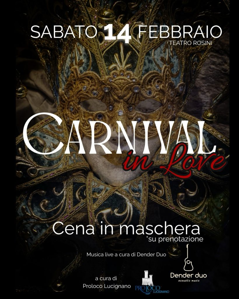 Sabato 14 febbraio, cena in maschera. Una serata speciale dove il fascino del Carnevale incontra la magia dell’amore.