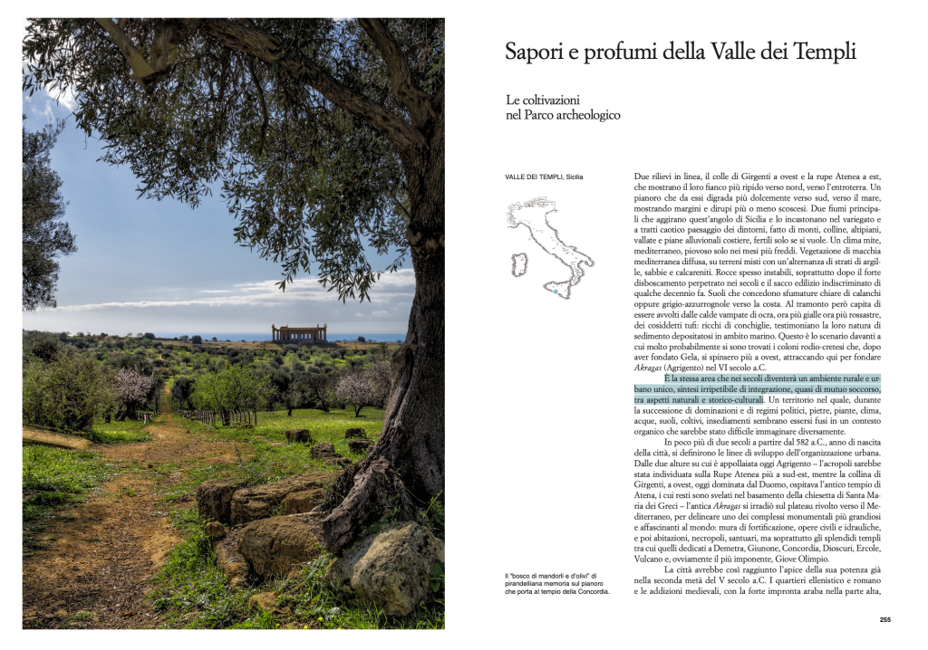 Nella terza sezione è il momento di mettersi in viaggio per andare a guardare da vicino le specificità di ogni regione italiana attraverso itinerari che parlano di mare, vulcani, ghiacciai, produzioni eroiche, isole. Un mosaico di paesaggi, territori o, per dirlo alla francese, terroir, nei quali da secoli o da pochi anni l’enogastronomia italiana ha delineato la sua fisionomia. Dagli orti dell’isola di Sant’Erasmo a Venezia agli ulivi, le vigne, i noccioli e i castagni della Tuscia laziale fino ai prodotti d’eccellenza che hanno conquistato il mondo come il prosecco e l’aceto balsamico di Modena.